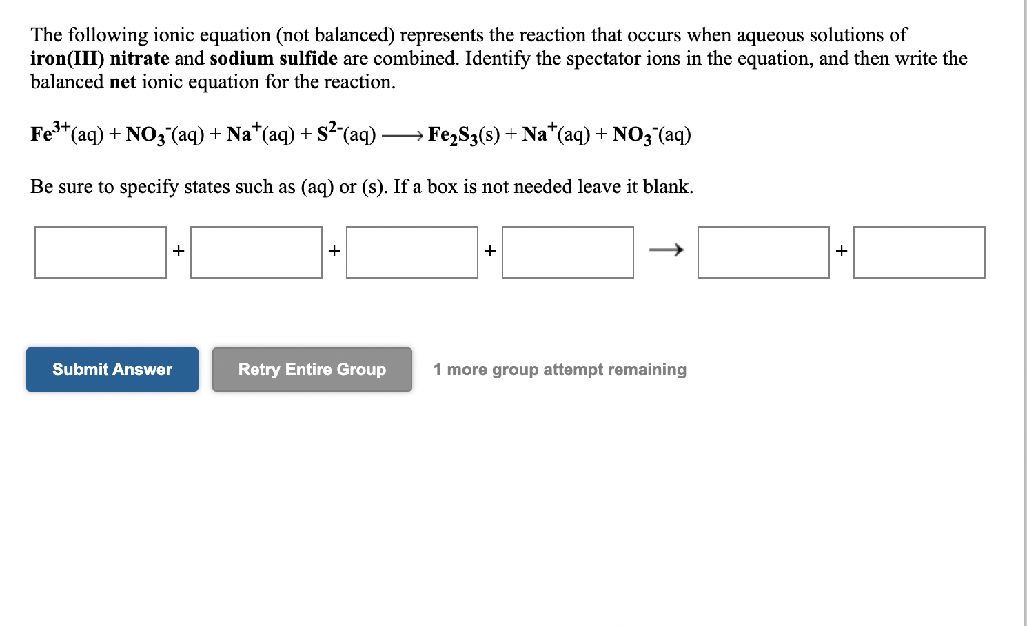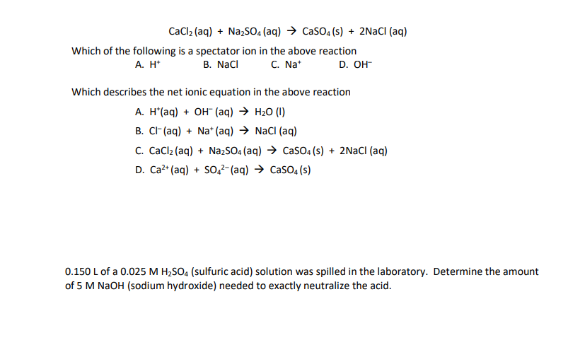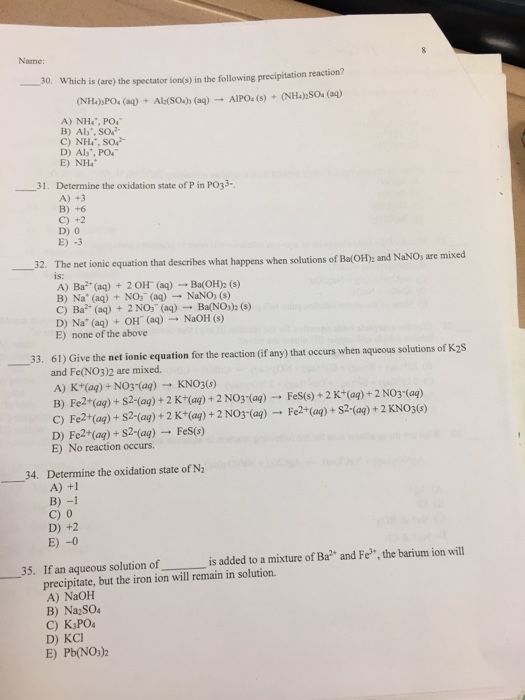 A student is given a sample in lab that contains one of. There are no spectator ions in this reaction. 1 mark Net ionic equation.
